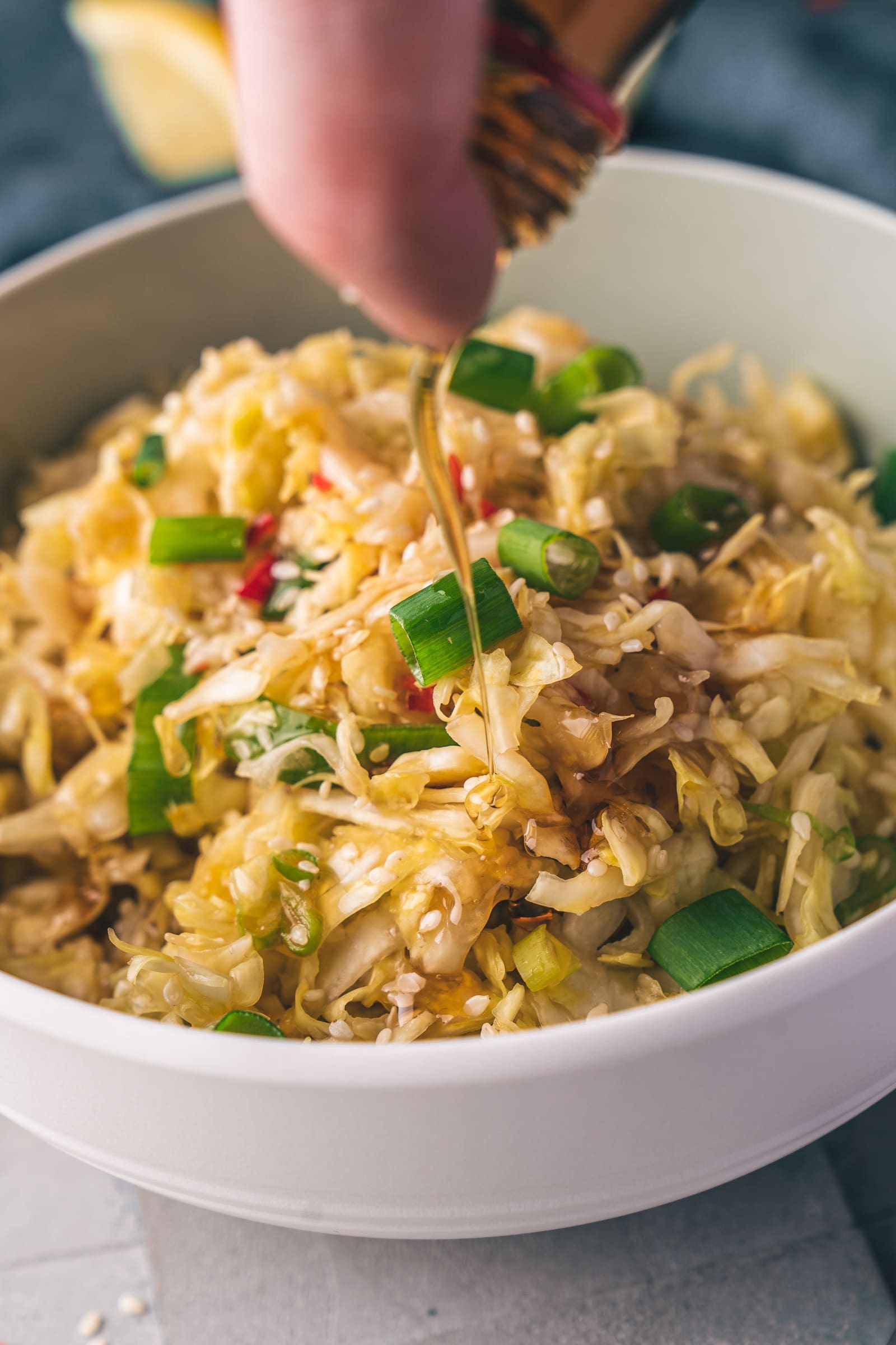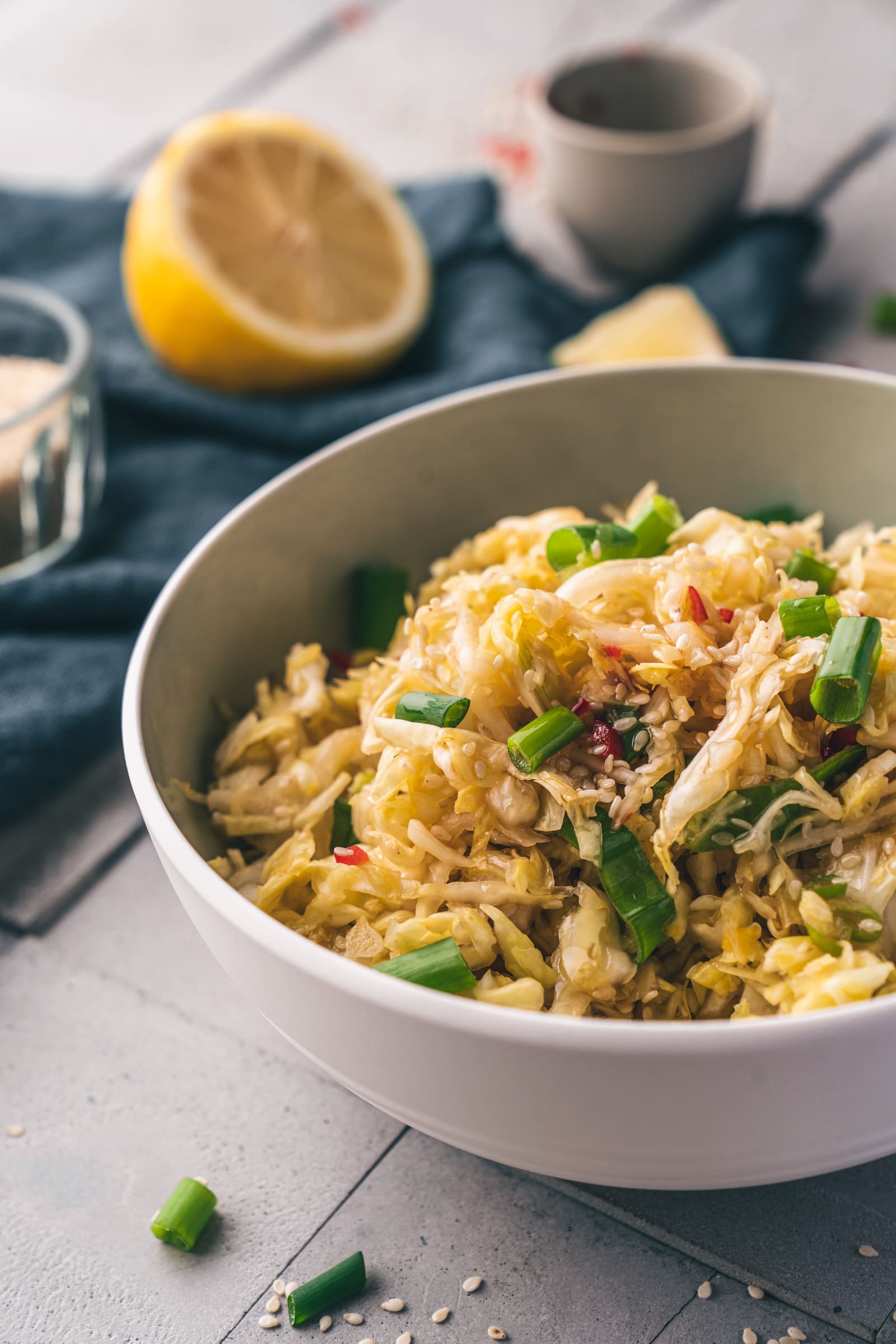 Asiatische Spitzkohlsalat mit Sesam und Chili