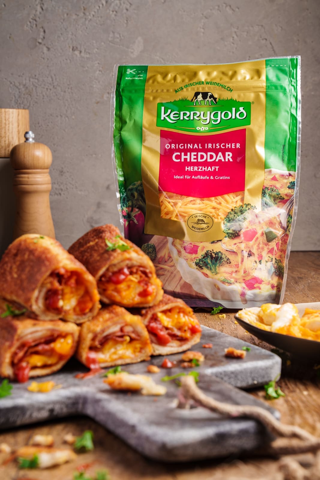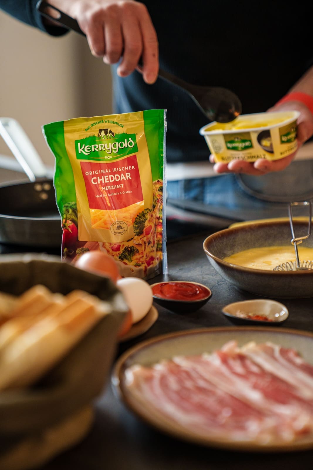 Bacon & Egg Rolls mit Cheddar. Das ist unser neuestes Frühstücksrezept. Wir hatten ja angekündigt, dass wir Euch vor Ostern insgesamt drei tolle Frühstücksideen vorstellen wollen. Gemeinsam mit unserem langjährigen Partner Kerrygold durften wir mit dem leckeren Original Irischen Cheddar und auch dem Butterschmalz ein echtes Highlight zubereiten. Damit haben wir zwei süße und eine herzhafte Leckerei für den Start in die Ostertage für Euch und natürlich auch für uns. Denn wir werden mindestens zwei der Rezepte mit der Family futtern.