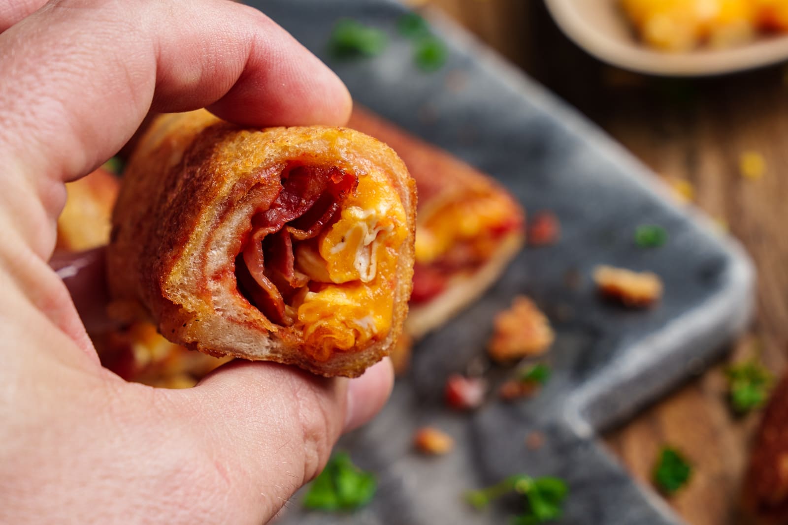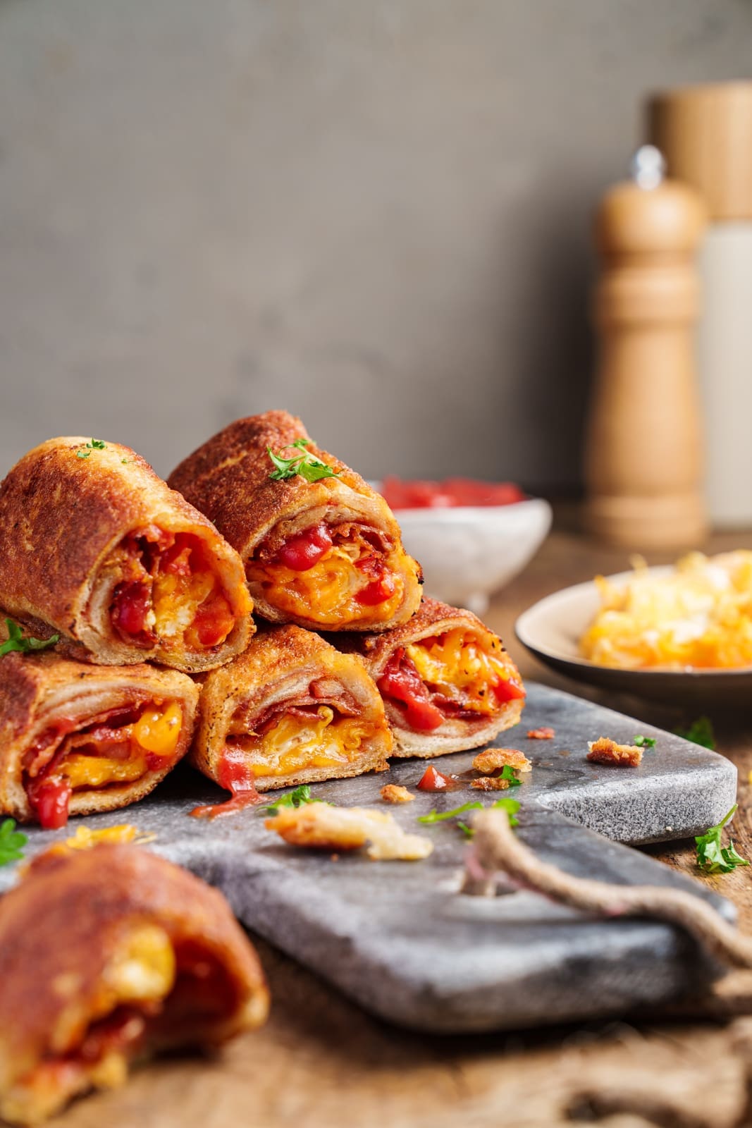 Bacon and Egg Rolls mit Cheddar
