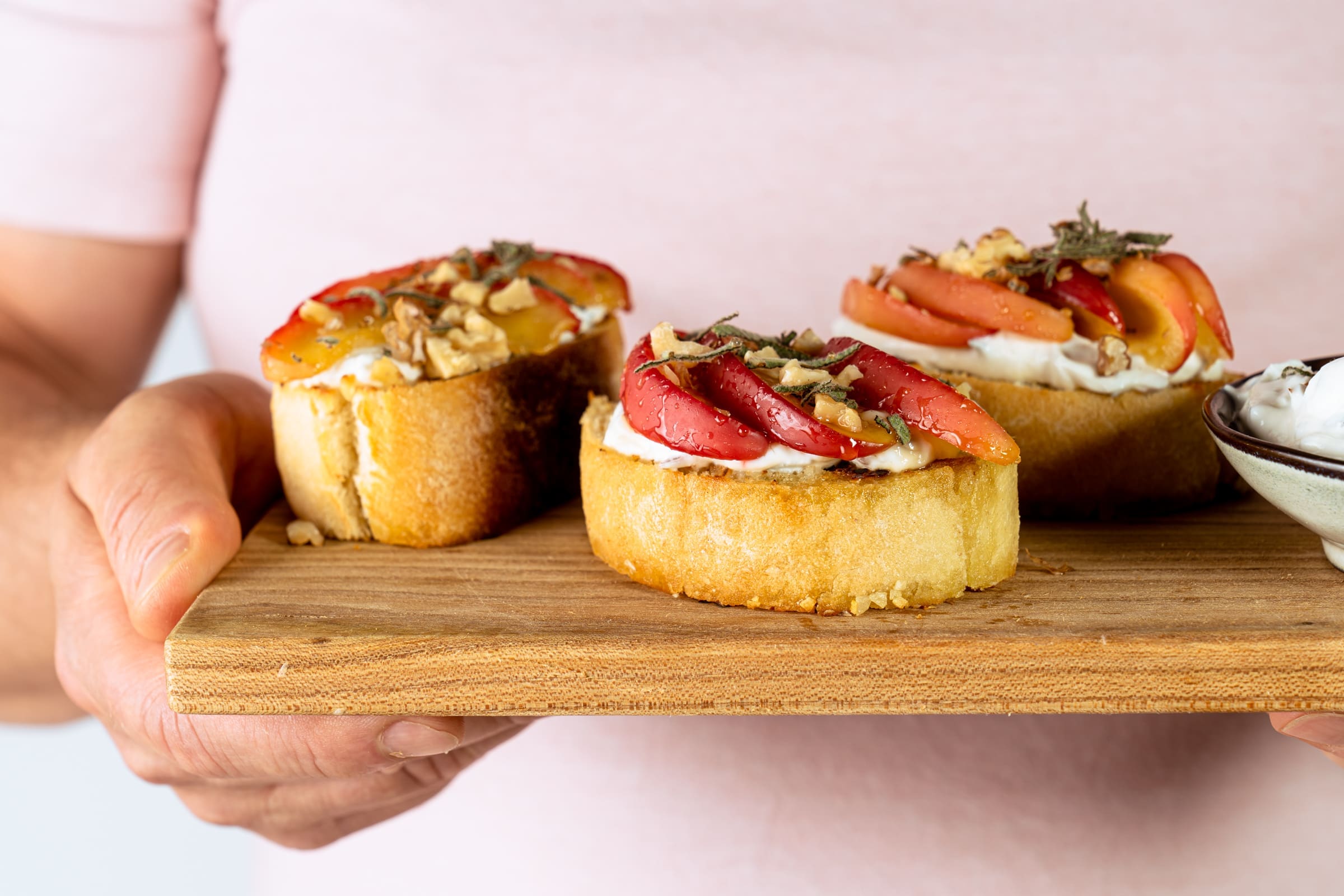 Dies ist ein tolles Rezept für alle, die Äpfel lieben und auch gerne gesünder snacken möchten. Unser Apfel-Bruschetta besteht aus nur wenigen Zutaten und kann in nicht mal 20 Minuten zubereitet werden! Es enthält Äpfel, Knoblauch, Condimento, Walnüsse und Honig. Die Äpfel werden mit dem Honig karamellisiert, bis sie ihren Saft abgeben und die Schale der JAZZ™ Äpfel eine noch leuchtendere roter Farbe annehmen. Dann gibt man Condimento hinzu, der für einen angenehm säuerlichen Geschmack sorgt, aber dennoch eine gewisse Süße beibehält. Zum Schluss wird das Gericht vor dem Servieren mit den Walnüssen getoppt! Wenn das nach Eurem Geschmack ist, dann probiert dieses fruchtige Snack-Rezept: Apfel-Bruschetta noch heute aus! Ihr werdet es nicht bereuen 🙂