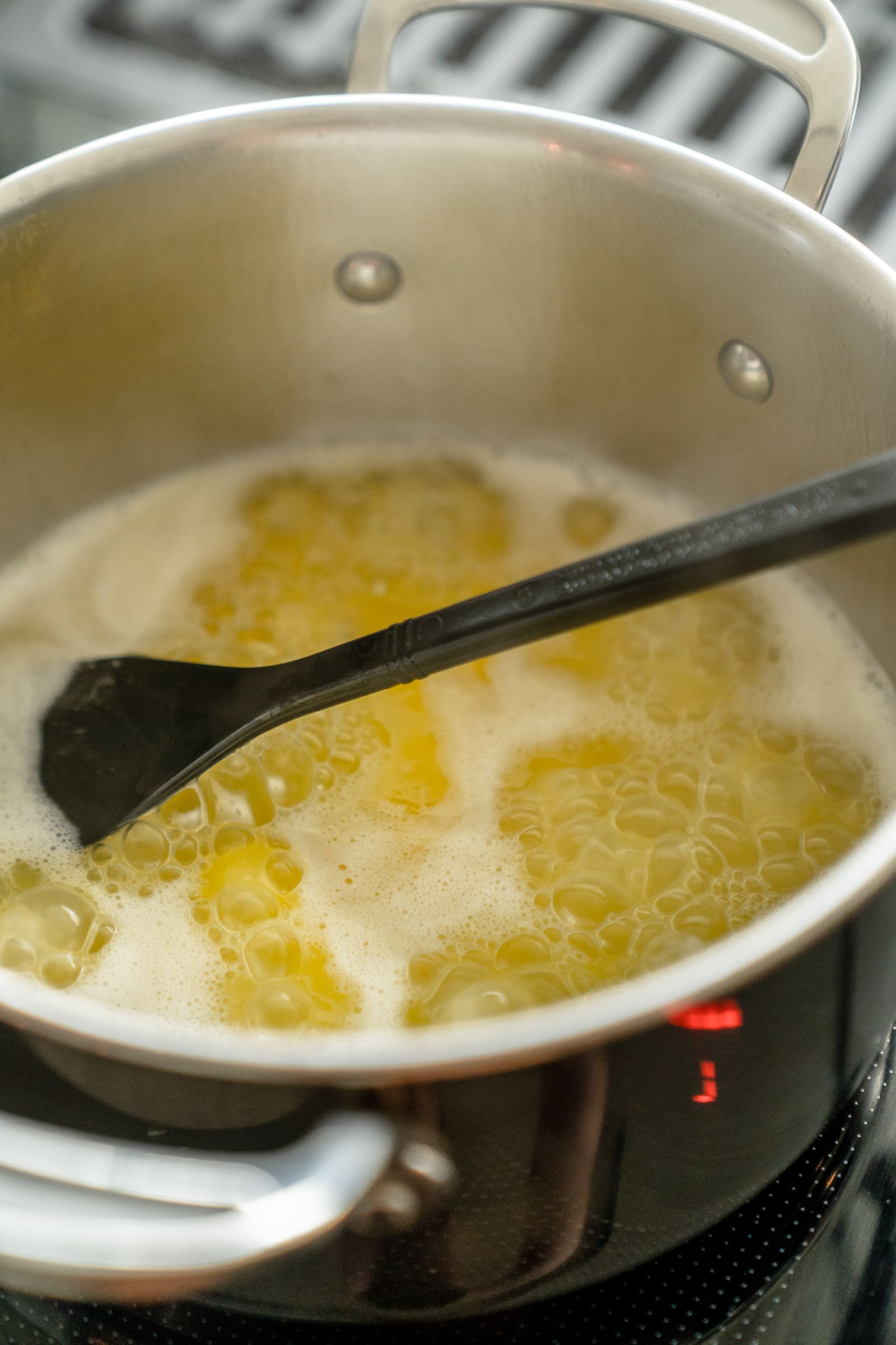 - Gebt alle Zutaten in einen Topf und erhitzt alles bei niedriger bis mittlerer Hitze unter Rรผhren, bis die Schokolade gechmolzen ist. Stellt die Sauce nun zur Seite und lasst sie abkรผhlen