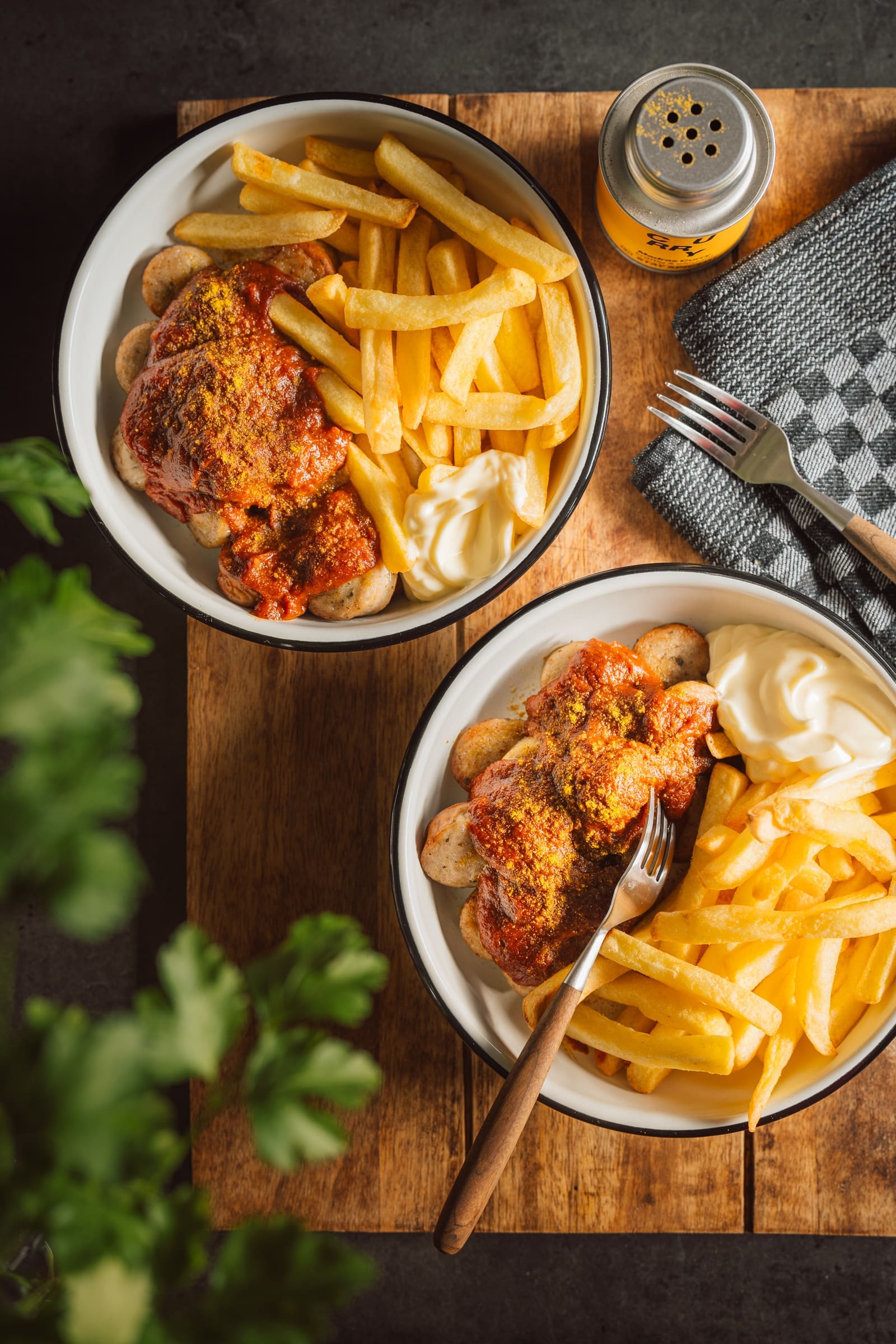 Currywurst mit Pommes – und das in nur 20 Minuten! Wer kann dazu schon nein sagen?! Wir beide gönnen uns hin und wieder mal eine Currywurst. Aber immer nur beim besten Currywurst-Stand in Köln. Da haben wir uns gedacht, wir müssten den “Mantateller” auch einmal zu Hause auf den Tisch bringen. Mit unserer neuen Lieblings-Heißluftfritteuse, der Tefal Dual Easy Fry & Grill haben wir für unser Rezept gleich auch noch Energie und Fett gespart. Gar nicht mal so schlecht, oder?!