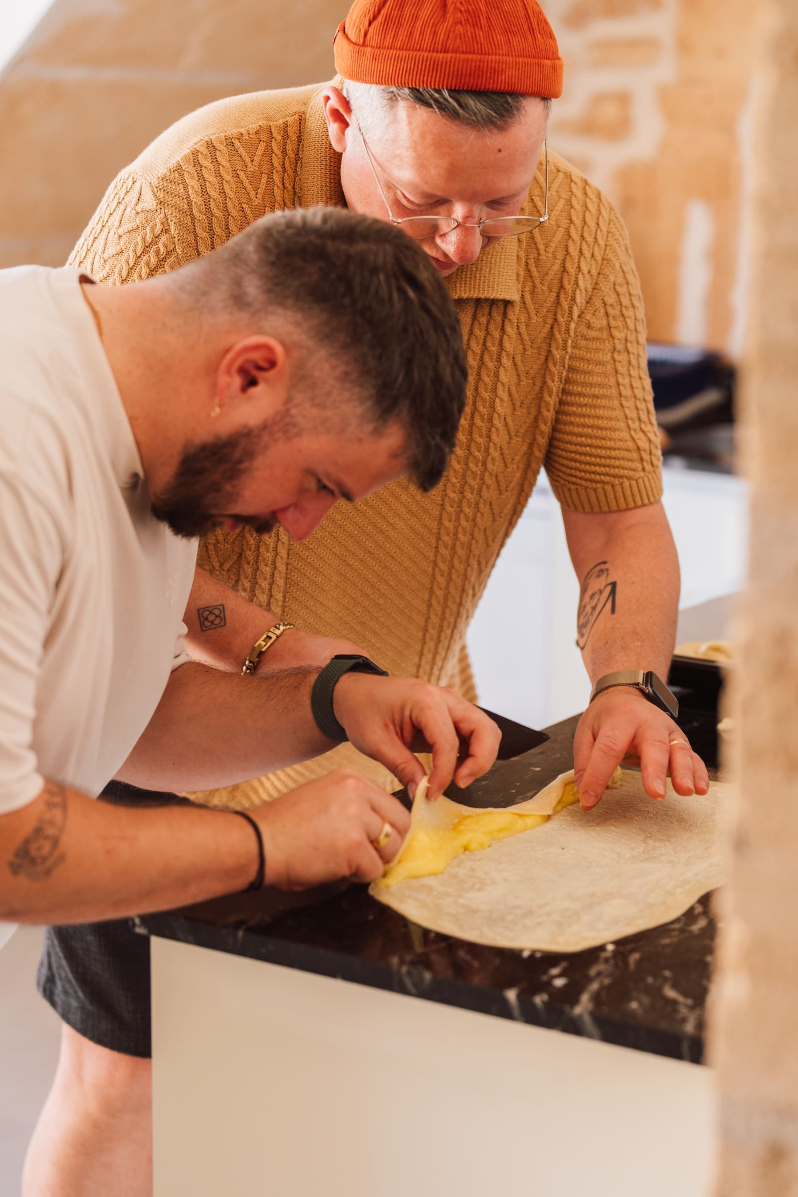 - Bestreicht nach und nach jeden ausgerollten Teig mit der super weichen Butter.