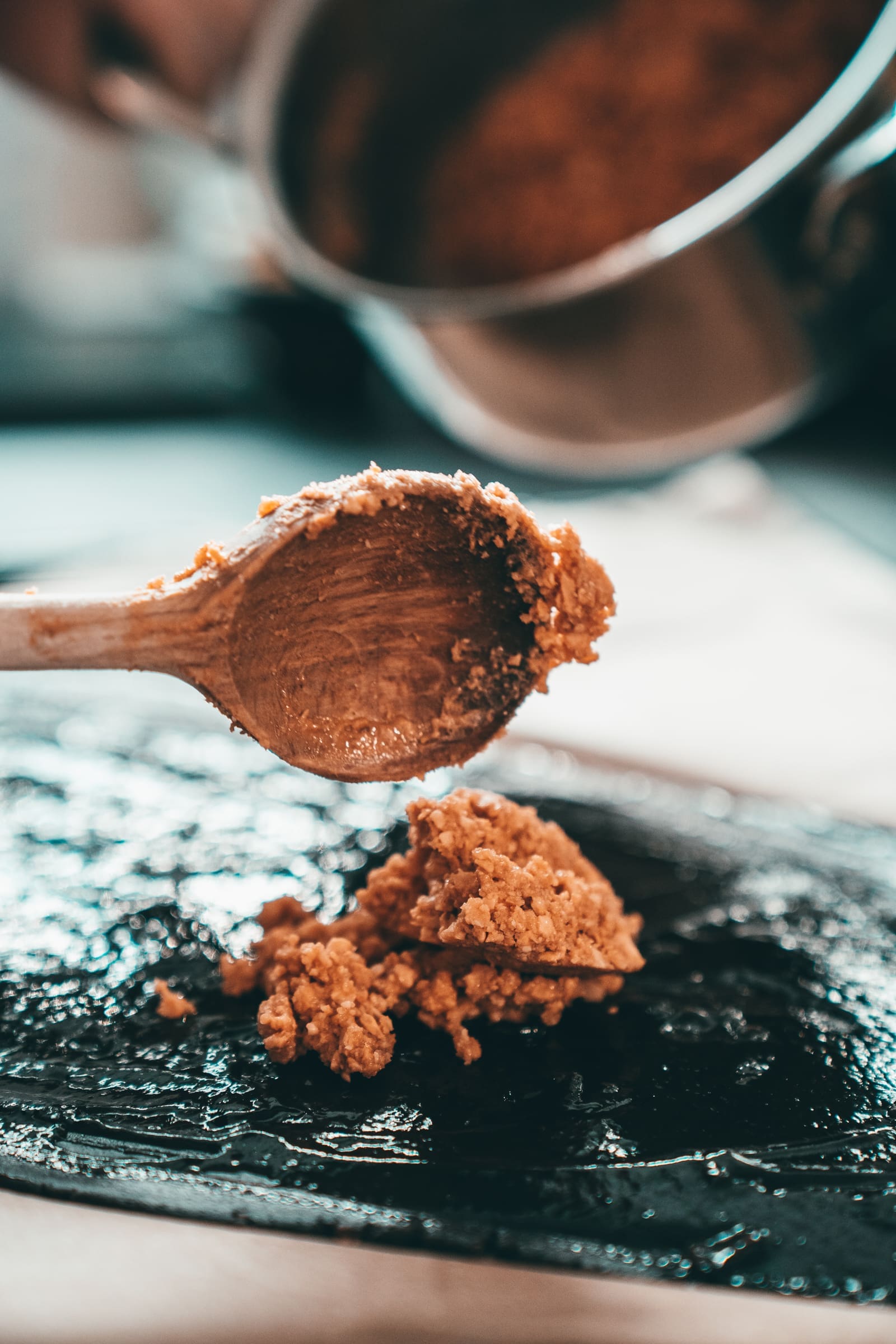 Masse aus salzigen Erdnüssen und cremiger Erdnusscreme