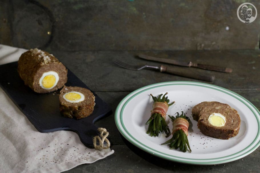 Hackbraten “Falscher Hase” mit Bohnen im Speckmantel