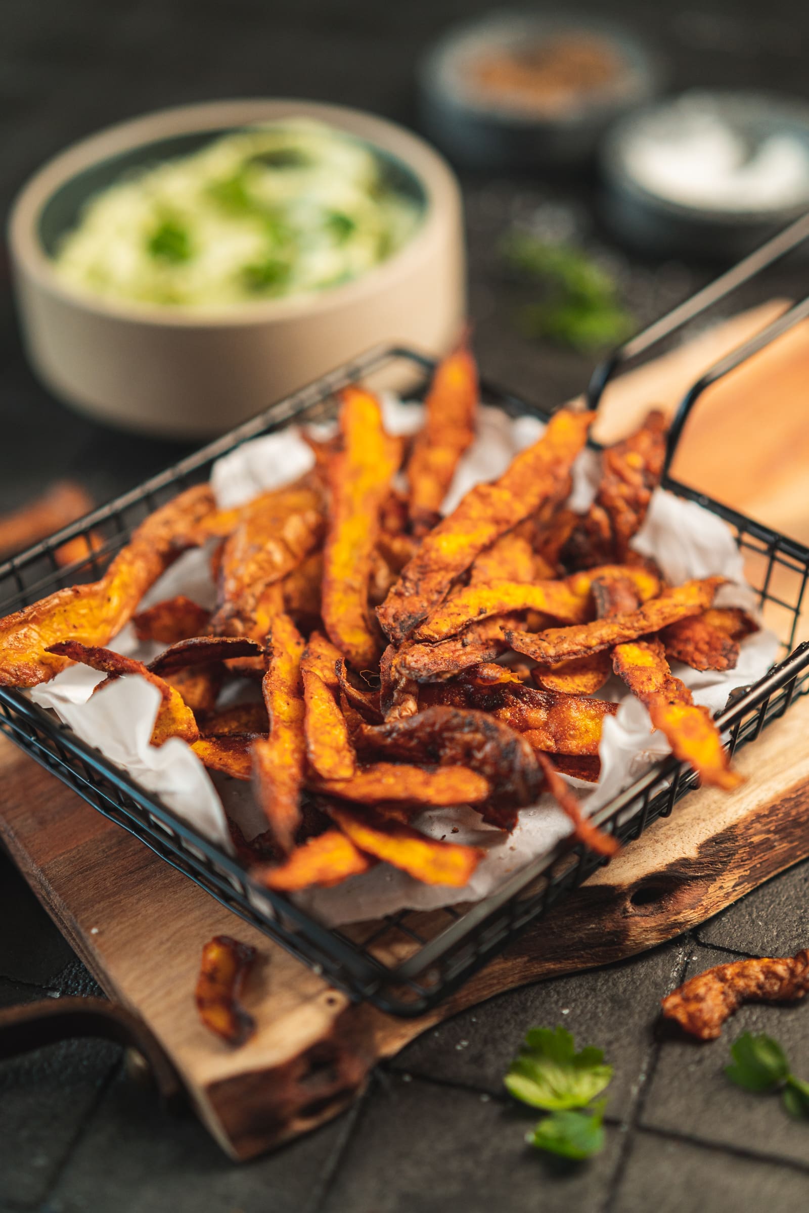 - Frittiert sie in 10-12 Minuten bei 180 °C zu knusprigen Chips. Rüttelt sie währenddessen 2-3 Mal gut durch, damit sie überall genügend heiße Luft bekommen.