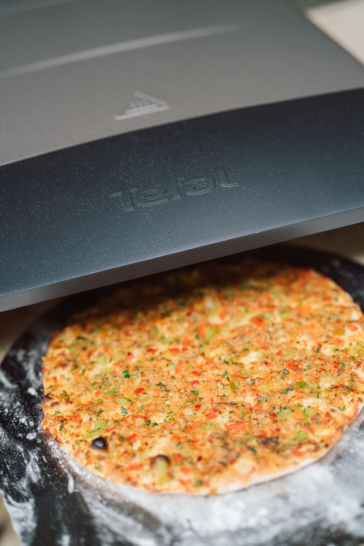 Wir haben den Tefal Pizza Pronto jetzt schon einige Male ausprobiert und haben darin Pizza und Lahmacun, aber auch schon Pide gebacken. Auch wenn Pide nicht gerade rund sind, hat das super funktioniert. Daher hat er uns auf ganzer Linie überzeugt. Mit seinem um 360° drehbaren Pizzastein aus Cordierit und einer maximalen Temperatur von 400 °C sorgt er für ein schnelles Backen und ein gleichmäßige Backergebnis. Euer Lahmacun, eure Pizzen und andere Teiglinge sind in ca. 90 Sekunden perfekt gebacken. Und wir werden vermutlich noch einiges mehr darin ausprobieren …