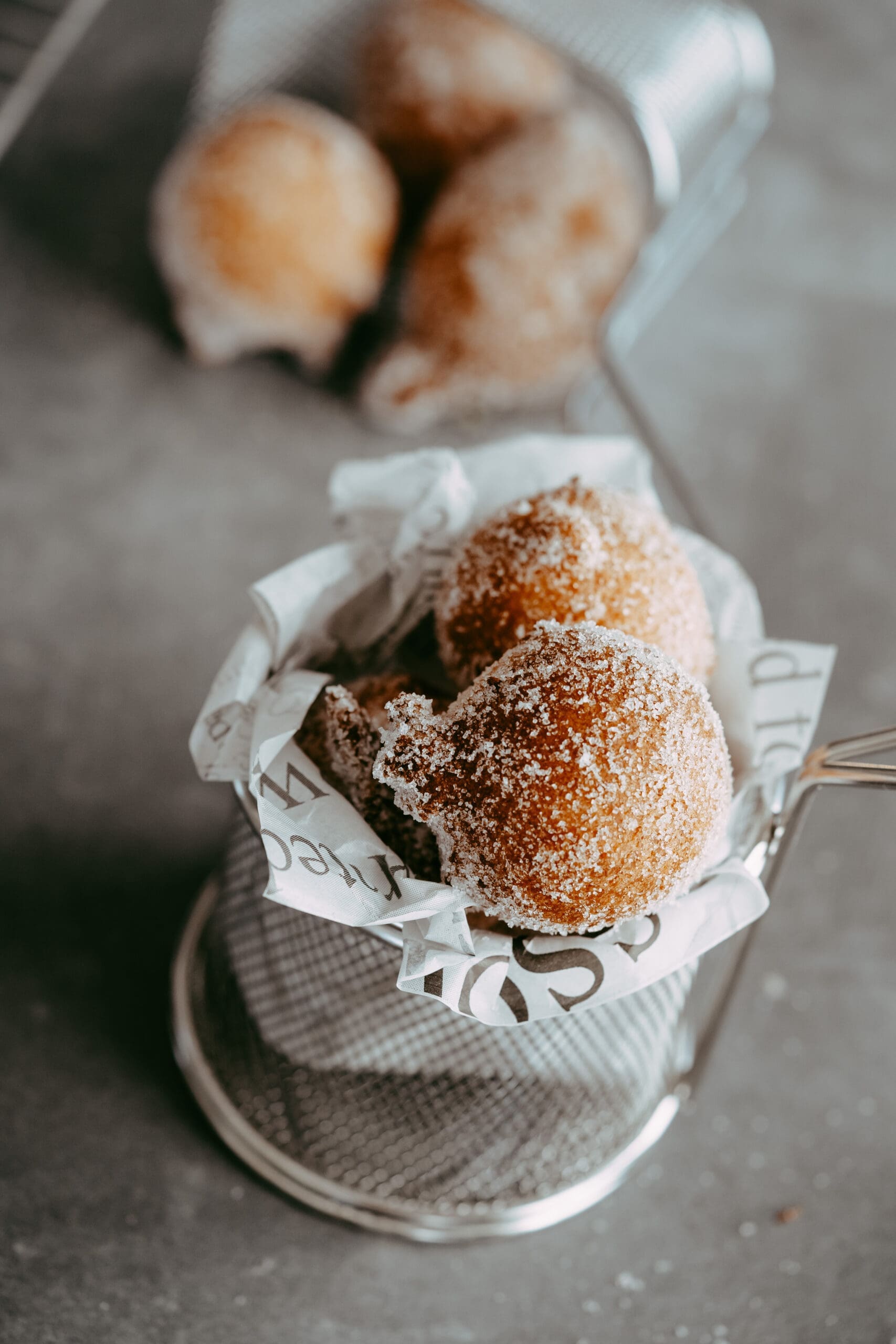 - Je nach Größe des Topfes, gebt nur so viele Teigbällchen ins Fett, dass sie sich noch von alleine drehen können. Backt die Mäuschen goldbraun aus und lasst sie auf Küchenkrepp abtropfen.Dann ummantelt ihr sie noch heiß mit feinstem Zucker in einer Schüssel