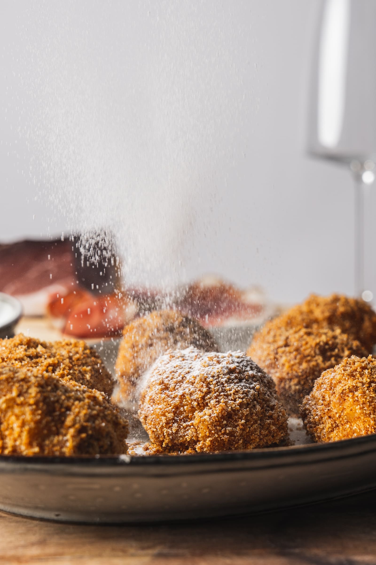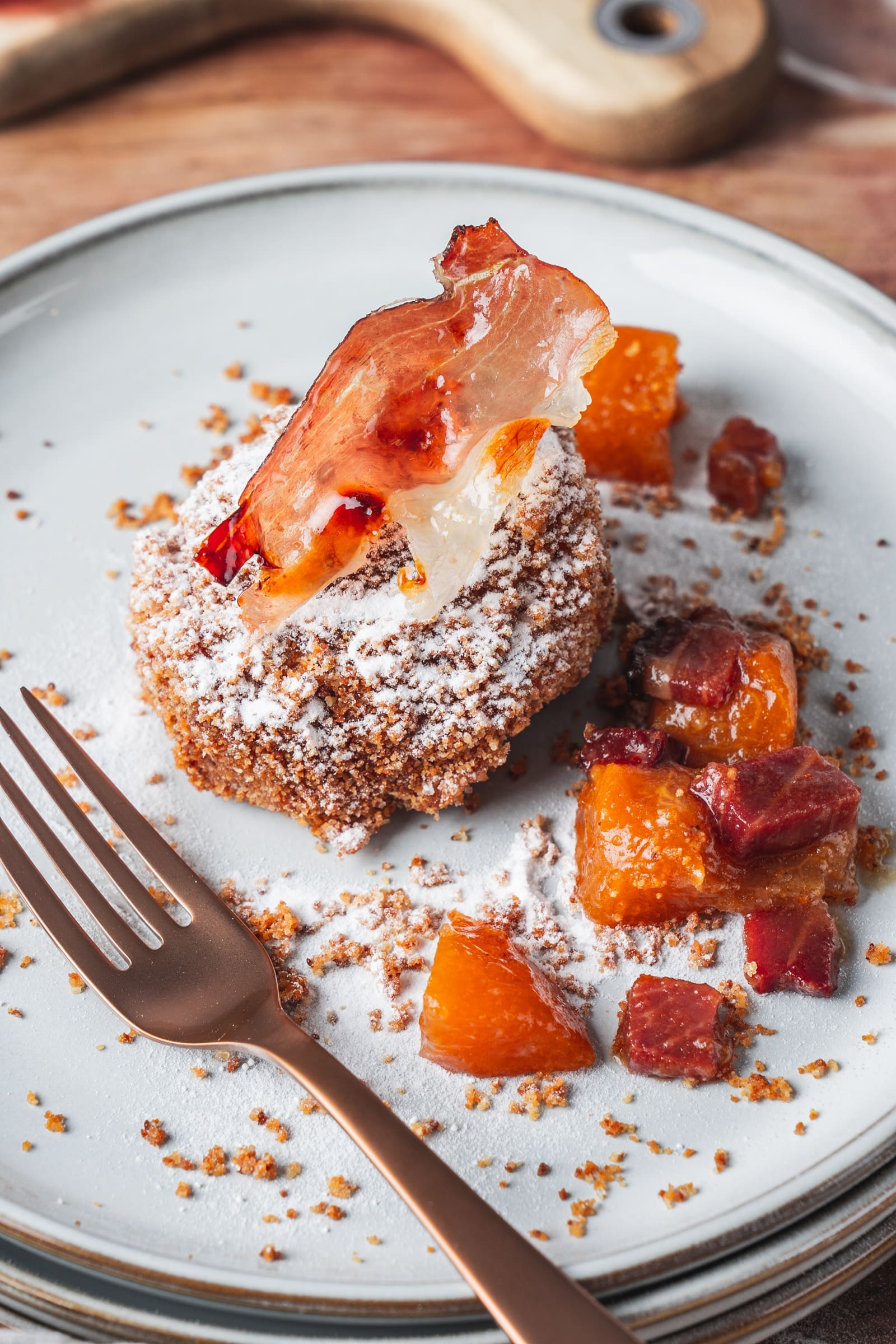 Wenn wir an Südtirol und Kulinarik denken, dann kommen einem ganz schnell Knödel in den Kopf. Das wird vielen von euch wohl auch so gehen, oder? Torsten liebt Marillenknödel über alles und wenn wir von Alpenküche sprechen, dann geht es bei ihm kaum ohne. Daher war die Idee für das Dessert recht schnell gefunden – jetzt ist ein Marillenknödel an sich noch nicht so rasend spannend, ein Marillen-Knödel mit Südtiroler Speck g.g.A. ist da eine ganz andere Nummer!