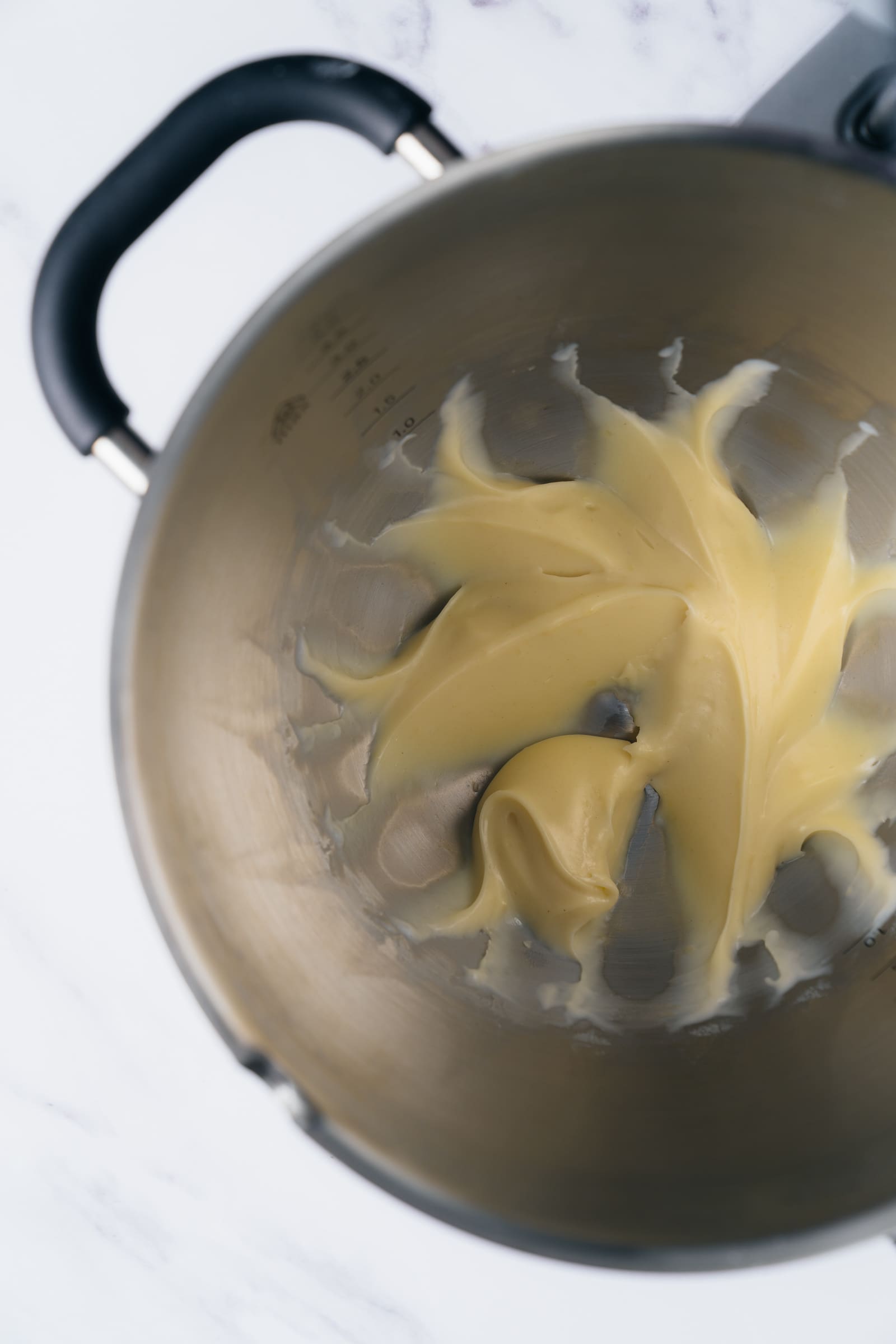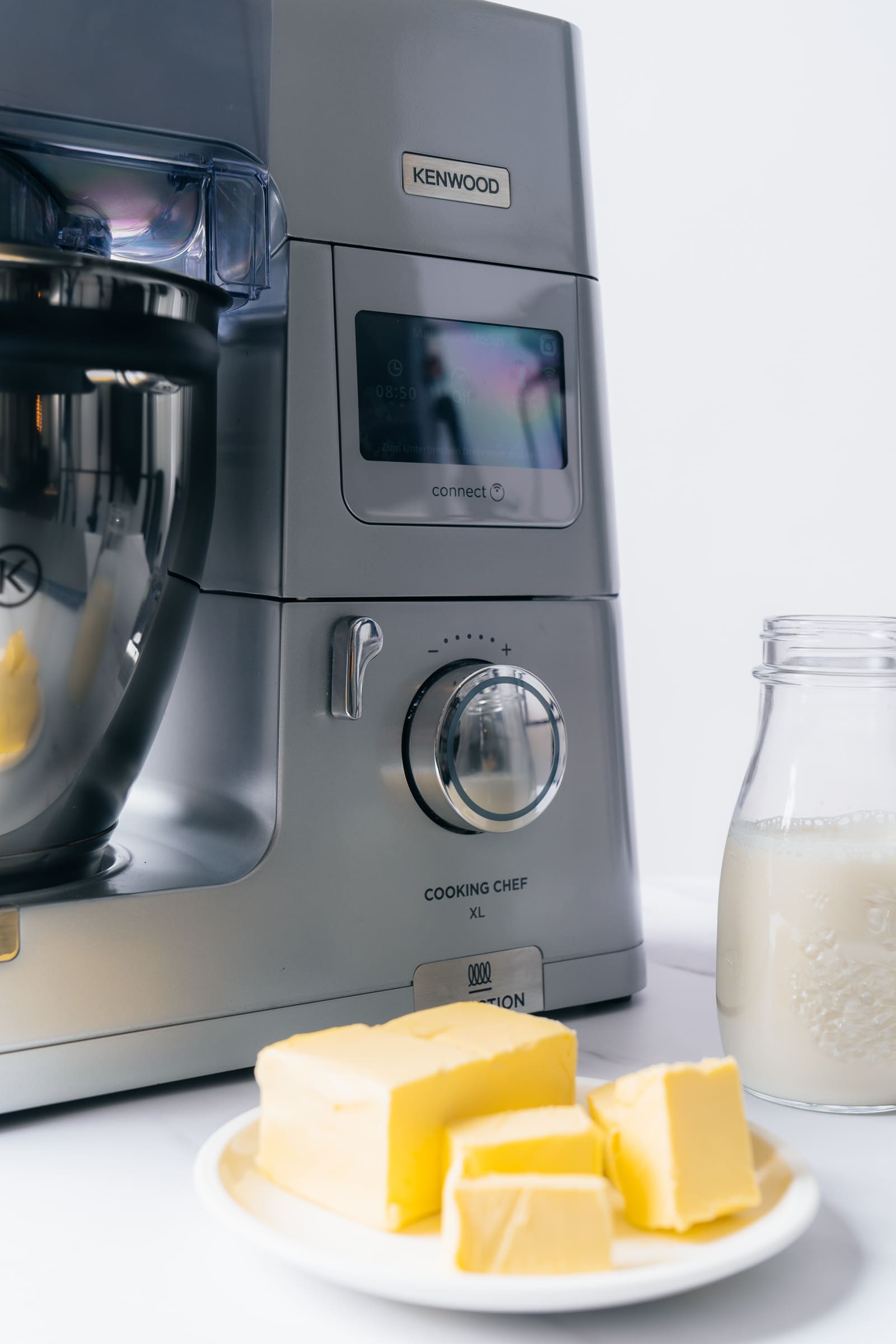 Thangzong ist eine Art Vorteig, der aus Wasser und Mehl hergestellt wird {wir haben in unserem Rezept direkt Milch genommen}. Unter Einfluss von Hitze geliert die Stärke im Mehl und bindet so mehr Flüssigkeit. Wie ihr auf dem Foto oben seht, entsteht eine cremige glatte Paste. Der Clou – das Ganze soll bei 65 °C zubereitet werden. Das ist mit einem Topf und Thermometer kein Problem, aber früher haben uns solche Rezepte immer abgeschreckt, daher ist dies auch einer der wunderbaren Effekte der Kenwood Cooking Chef XL. Sie kann gradgenau temperieren und solche Angaben in Rezepten sind somit kaum einfacher zu bewerkstelligen!