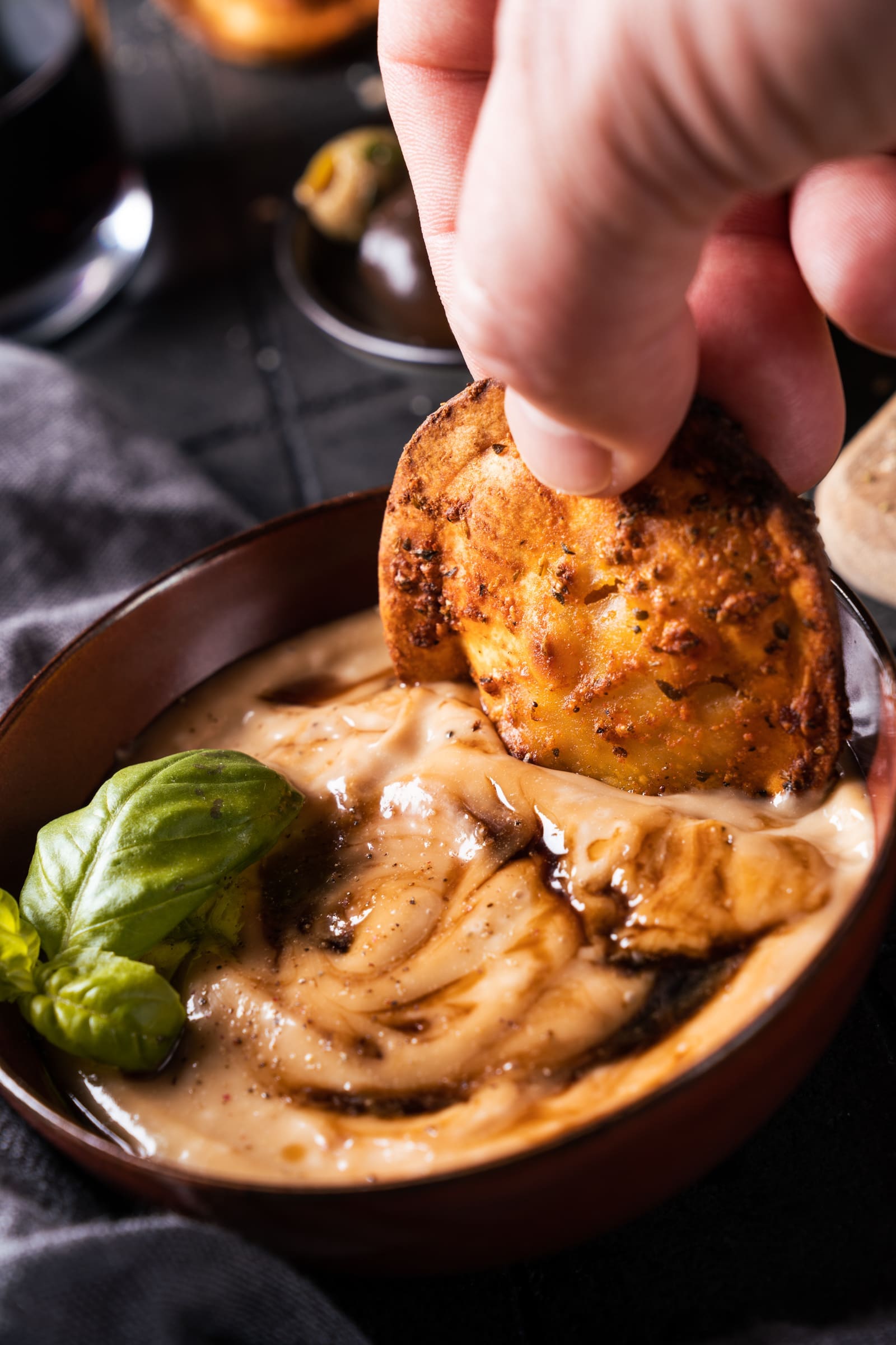 Ravioli-Chips mit Balsamico-Aioli