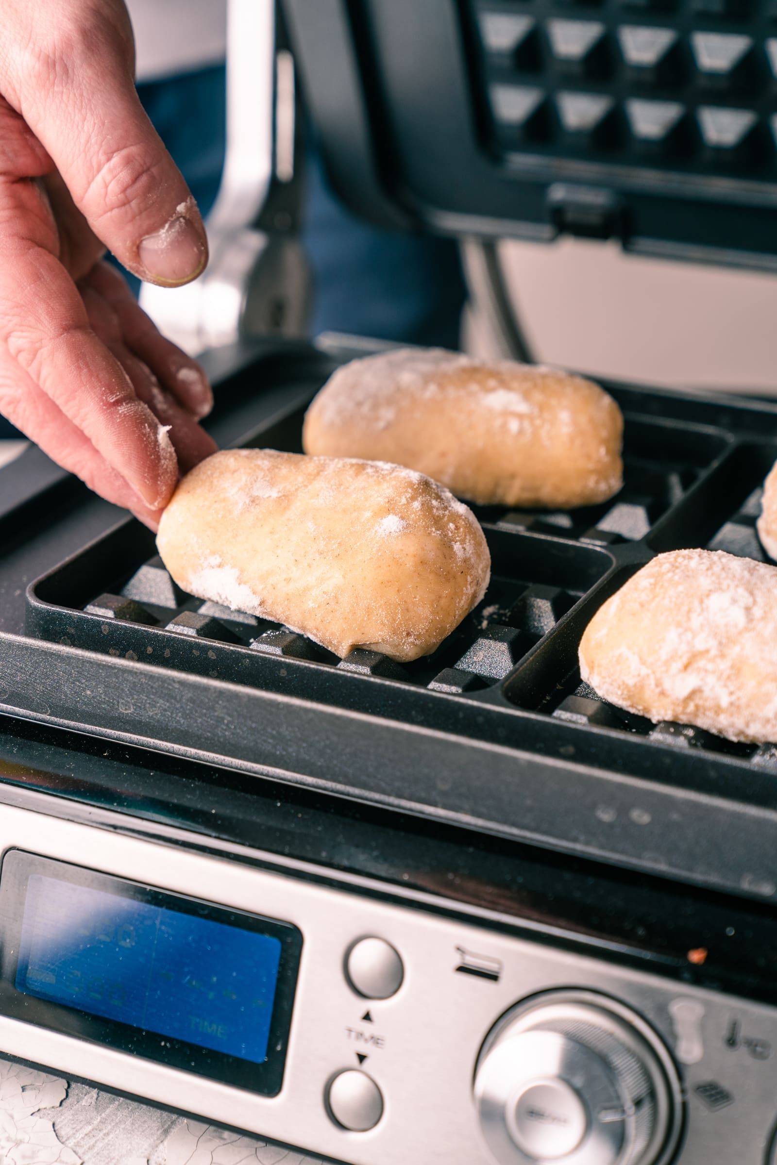 - Heizt euer Waffeleisen auf und backt jeden Rohling für ca. 6-7 Minuten (das kann aber bei den verschiedenen Waffeleisen variieren – macht da am Besten erst mal einen Test).