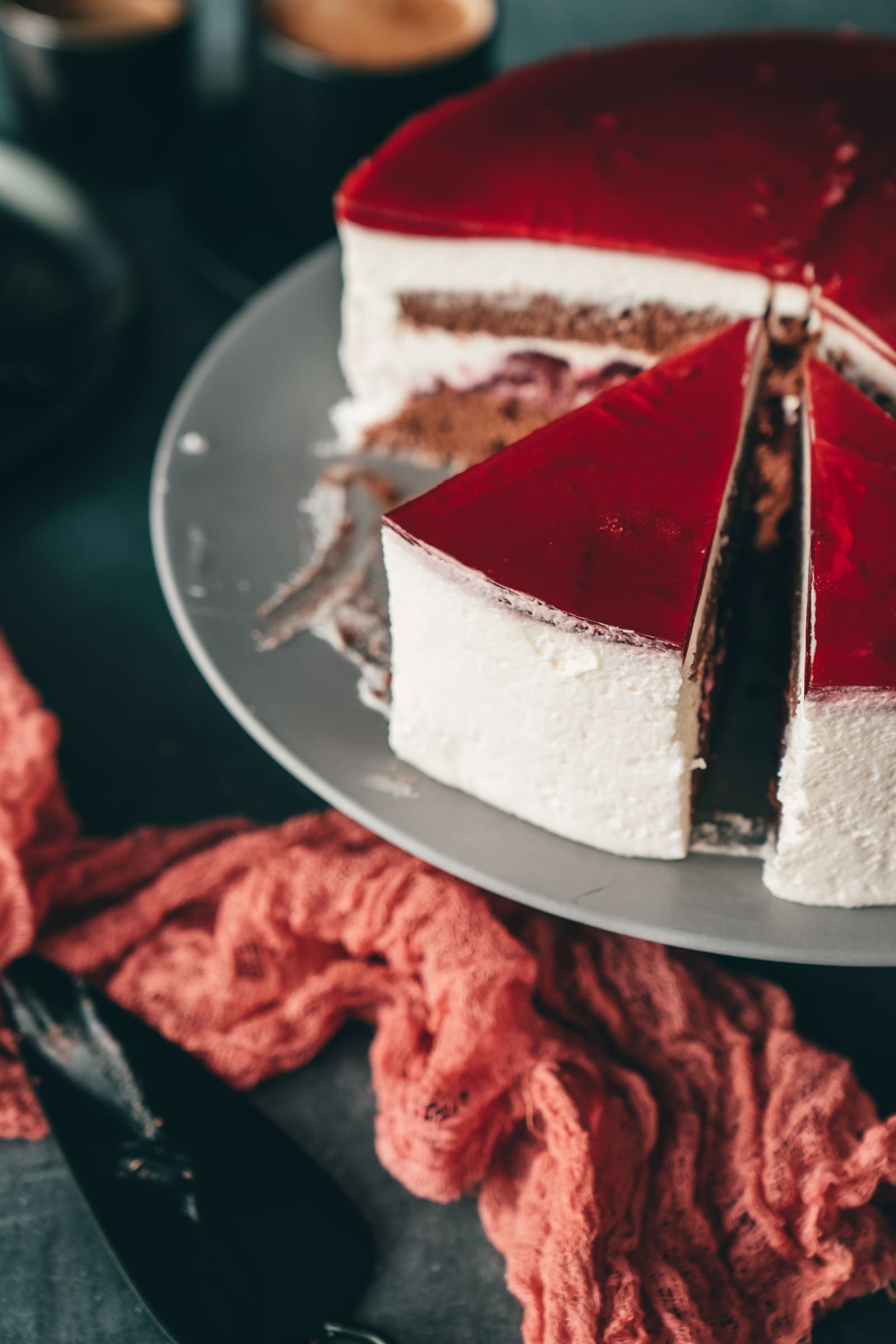 Daraus wurde dann ein 2-Stunden-Telefonat, bei dem wir tausend Möglichkeiten durchgekaut hatten – dabei raus gekommen ist dieser Schwarzwälder Schneewittchenkuchen. Mein Vater hat sich schockverliebt in diese Idee. Vielleicht weil es seine war, aber pssst! Das Ergebnis ist auf jeden Fall genial geworden.