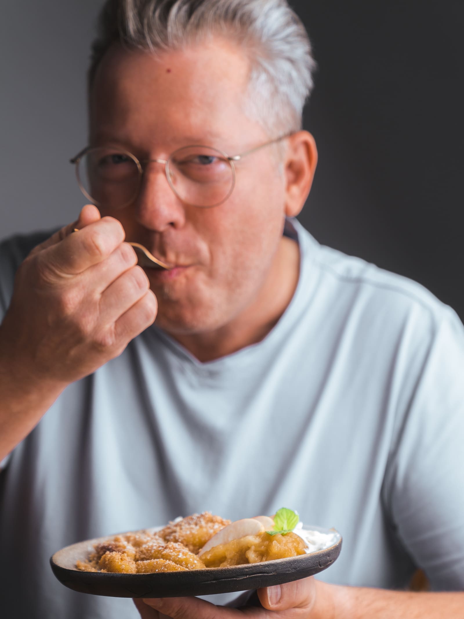 Süße Schupfnudeln mit Apfelkompott und Creme Fraîche