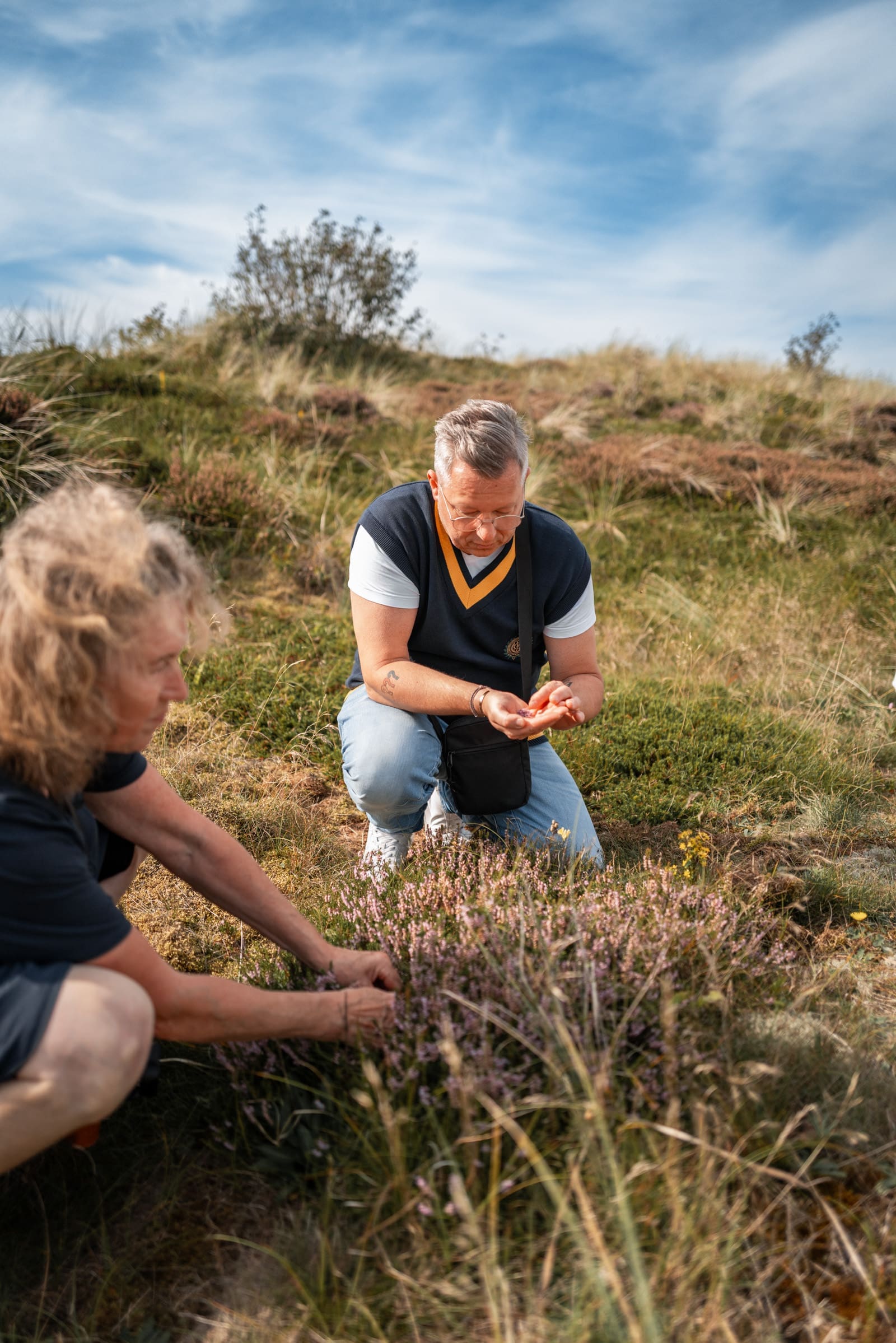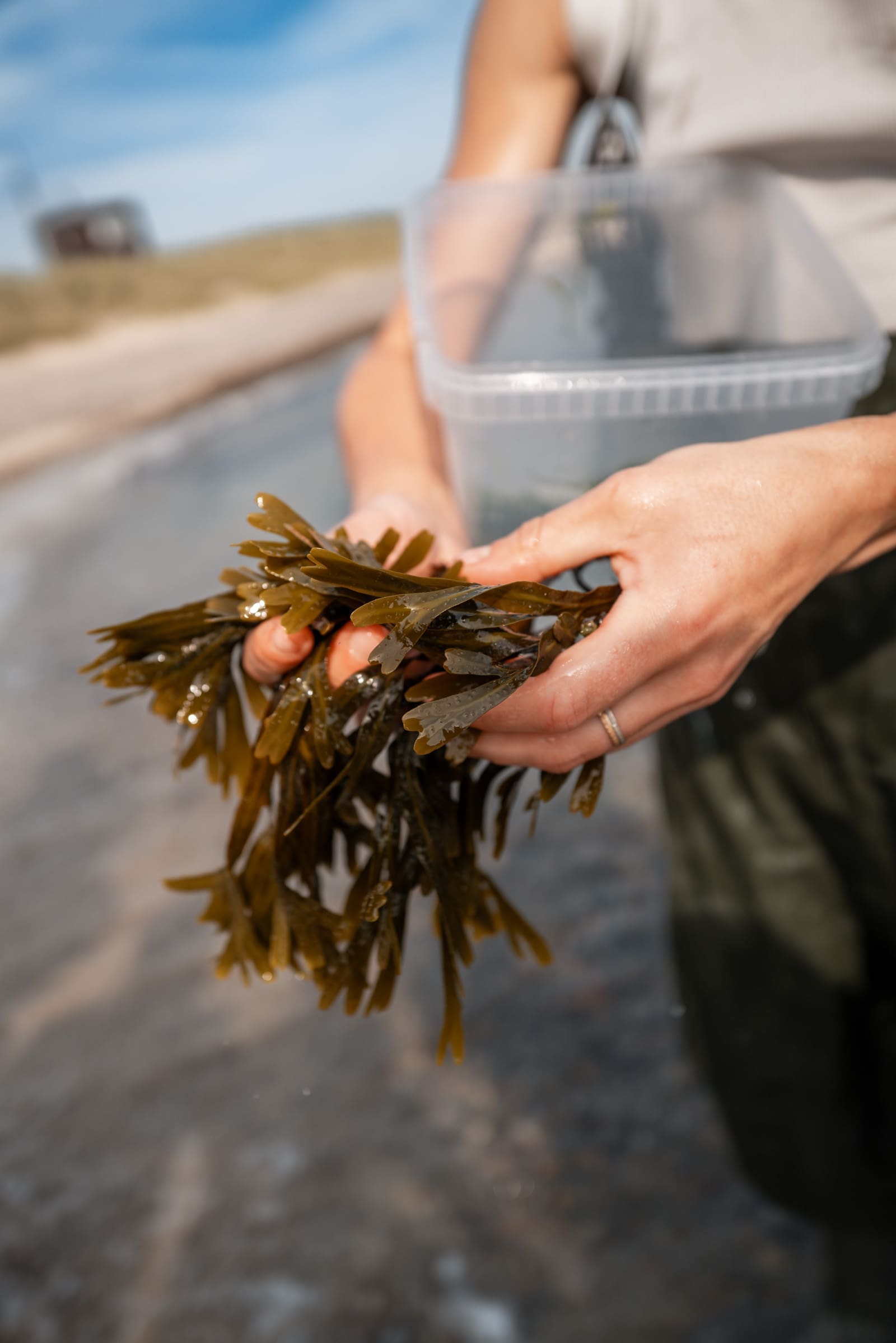 Gemeinsam haben wir mit Matilde wilde Zutaten rund um den Leuchtturm gesammelt. Als Gäste könnt ihr diese Erfahrung leider nicht selbst machen, Matilde wollte uns aber zeigen, dass viele der verwendeten Zutaten direkt aus der Umgebung des Restaurants stammen. Wir haben Sanddorn, Meerrettich, Erika, Sauerampfer, verschiedene Beeren, Blüten und vieles mehr gesammelt. Auf der anderen Seite des Leuchtturms kommt direkt aus dem Meer verschiedenster Seetang.
