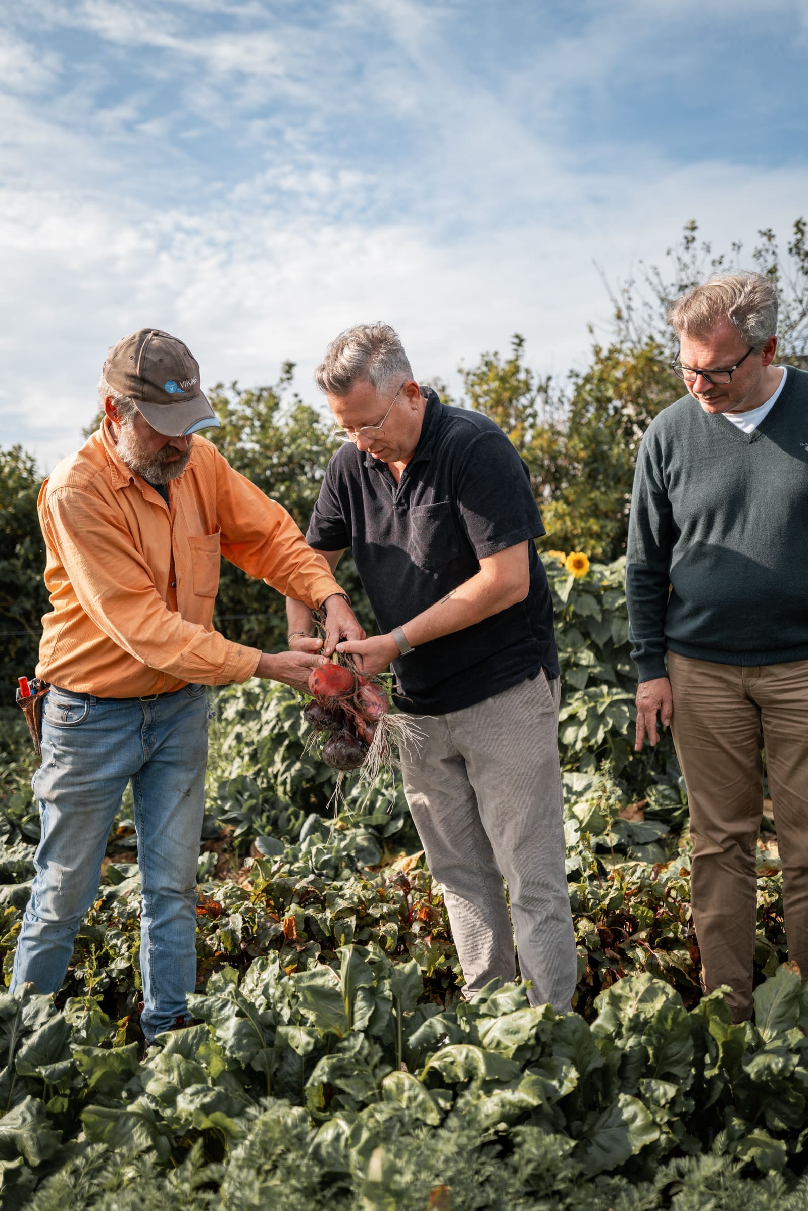 - Jetzt wird das Feld mit Gemüse bepflanzt, das in dem lockeren Boden fantastisch wachsen kann.