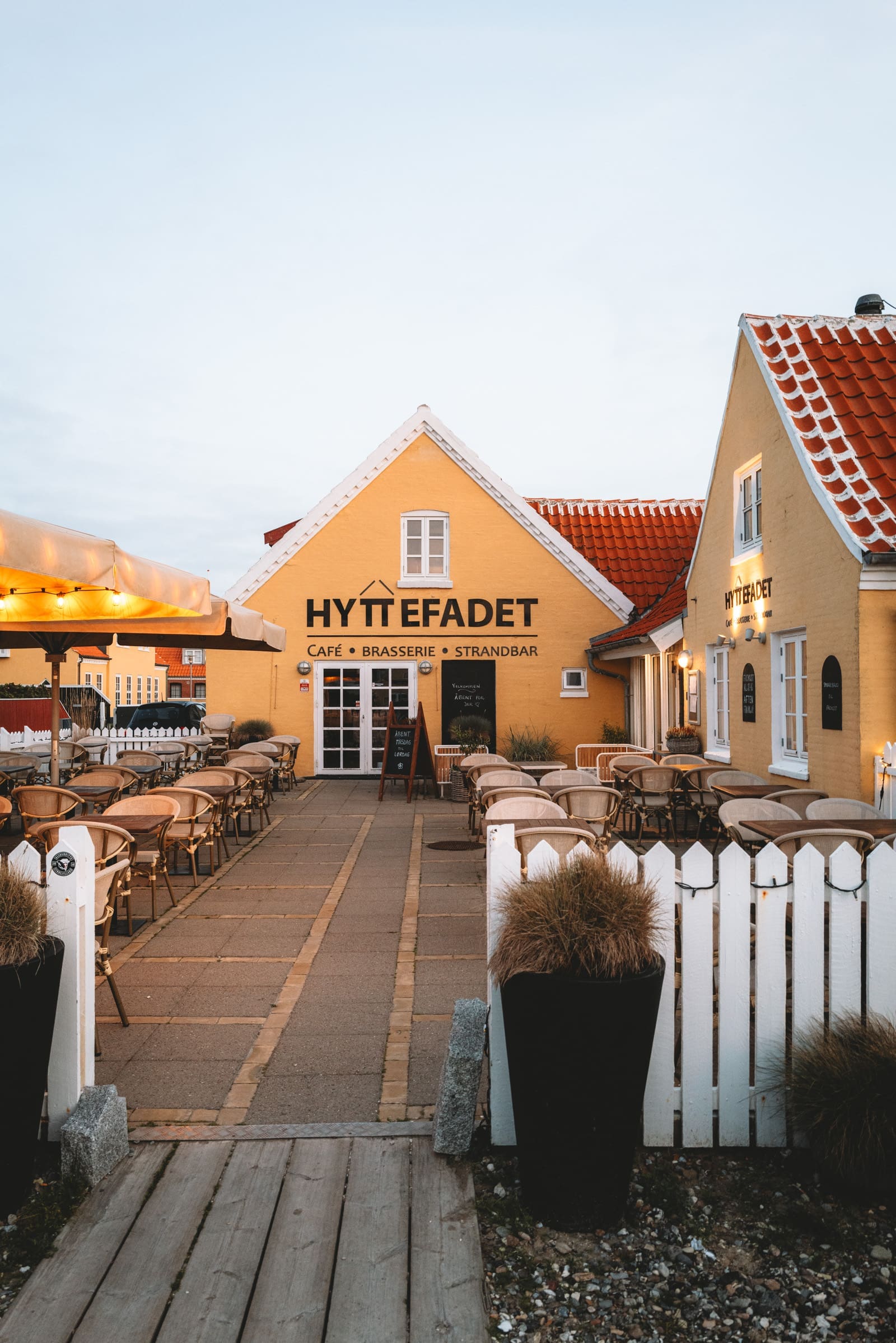 Wenn das Wetter es zulässt, kann man auch auf der wirklich schönen Außenterrasse essen. Im Hyttefadet könnt ihr also perfekt Mittag- oder Abendessen, dabei ein leckers Glas Wein inmitten der gelben Skagen-Häuser, inklusive dem Duft von Meer genießen.