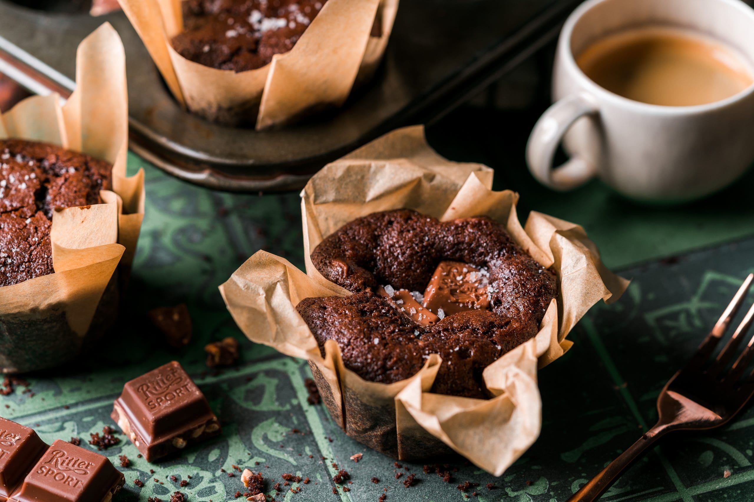 Wir haben unsere veganen Schokomuffins mit den neuen veganen Schokosorten von RITTER Sport verfeinert: ‘Roasted Peanut’ und ‘Salted Caramel’. Diese beiden neuen Sorten sind eine köstliche Ergänzung des veganen Sortiments von RITTER Sport und begeistern Schokoladenfans mit ihrem einzigartigen Geschmack. Die Sorte ‘Roasted Peanut’ vereint knusprig geröstete Erdnüsse mit zarter Schokolade und sorgt für ein Geschmackserlebnis, das man nicht so schnell vergisst. Diese Sorte ist unser neuer Favorit, wenn es um vegane Süßigkeiten geht – kein Zweifel!