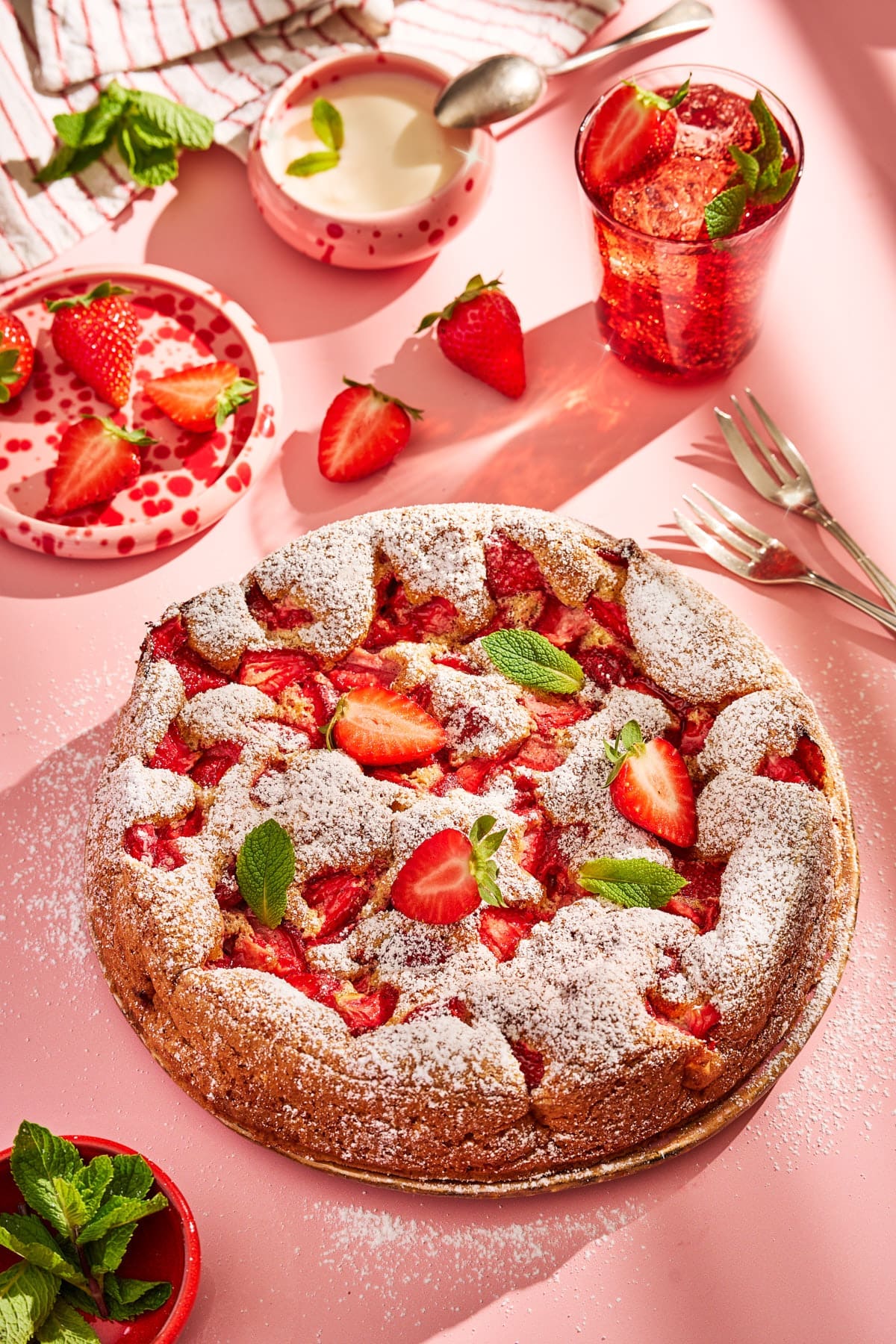 Warum ihr diesen versunkenen Erdbeerkuchen ohne Butter lieben werdet