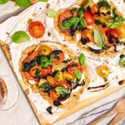 Zu unserem Caprese Flatbread passt perfekt ein italienischer Primitivo Rosé, aber auch ein Sauvignon Blanc. Probiert es einfach aus.