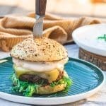 Die Mayonnaise könnt ihr sehr gut auch schon am Tag zuvor zubereiten. Wenn ihr aber denkt, dass ihr davon auch noch etwas übrig habt für ein paar Kartoffelecken, die ihr dazu machen wollt, dann solltet ihr doch die doppelte Menge vorbereiten. Diese hier geht schon fast bei den Burgern drauf.