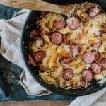 Am besten arbeitet ihr für die Schupfnudelherstellung zu zweit. Bringt dafür Salzwasser in einem großen Topf zum kochen und stellt direkt eine große Schüssel mit Eiswasser, sowie einen Teller mit Küchenkrepp daneben. Das Abschrecken der gekochten Schupfnudeln verhindert nach dem Garen das Aneinanderkleben.