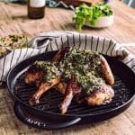 Das Chimichurri könnt ihr auch super vorbereiten und in Gläsern (oder einem Glas) abgefüllt im Kühlschrank lagern. So machen wir das auch meistens, denn Chimichurri kann man ruhig immer zu Hause haben. Es passt zu den meisten Fleischgerichten und auch einfach nur so zum Brot als Dipp. Daher machen wir auch gerne eine größere Portion, die wir dann immer auf Lager haben. Leider ist es immer viel zu schnell aufgefuttert ... Die Backzeit des Hähnchens richtet sich natürlich immer nach der Größe. Da wir ausschließlich Kikokhähnchen verwenden, ist das aber gar nicht so schwer, den richtigen Garpunkt zu erkennen, denn es ist immer mit einem kleinen roten "Thermometer" versehen, das euch den richtigen Zeitpunkt dadurch anzeigt, dass es sich aus dem Fleisch heraus drückt.