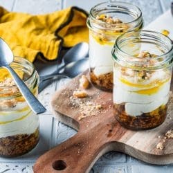 Rezept für ein fruchtiges Passionsfrucht-Tiramisu mit Amaretti. Die perfekte Kombi aus Frucht- und Kaffeearomen und in 12 Minuten super für eine Party vorzubereiten.